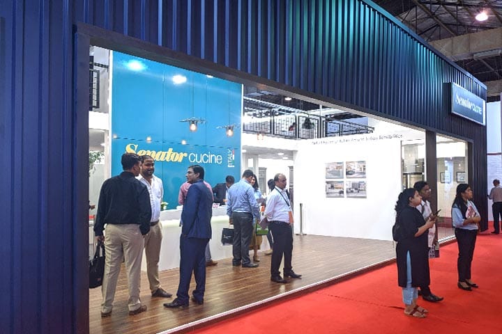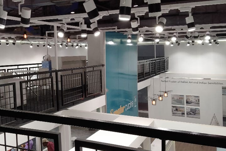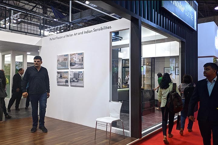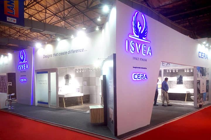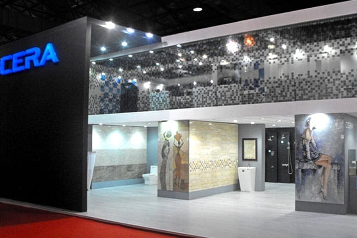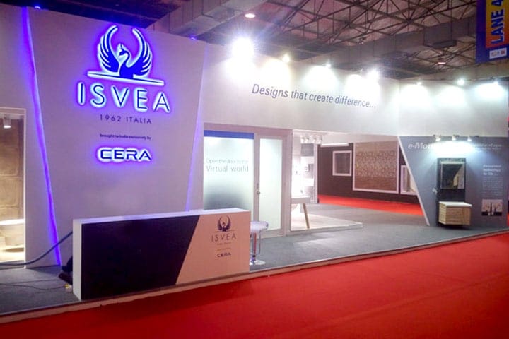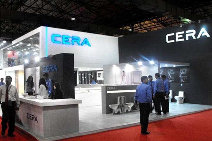 The highlight of the above exhibition booth was a futuristic shape which grabbed the attention of the visitors. With Cera signing up a female lead Sonam Kapoor as the brand ambassador, large format graphics adorned this exhibition stall. The sleek lines, glass facade & bold branding made a style statement and made CERA stand out on the show floor.