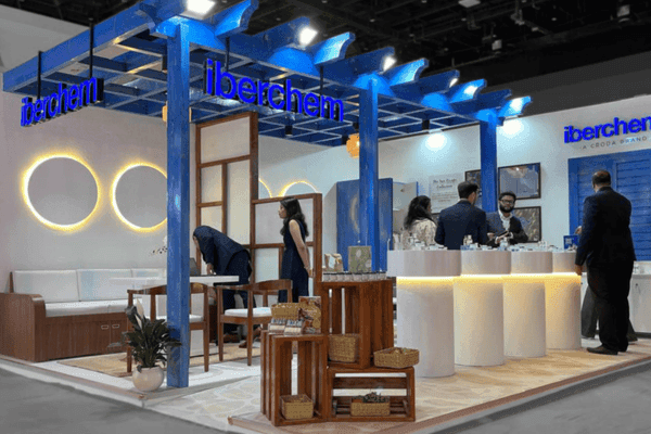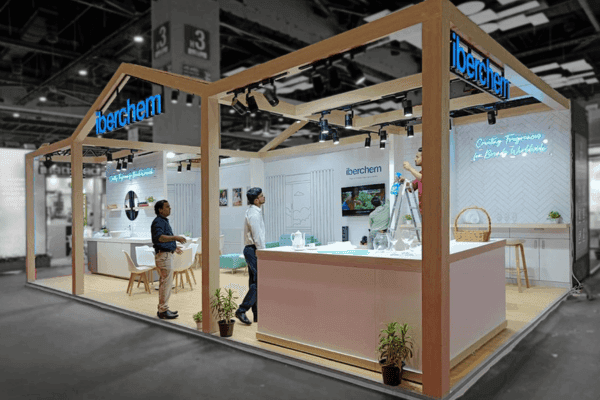 At HPCI Mumbai 2024, the booth drew from Iberchem’s Spanish heritage. Mediterranean elements like archways, textured finishes, and breezy colours created an airy, inviting atmosphere.