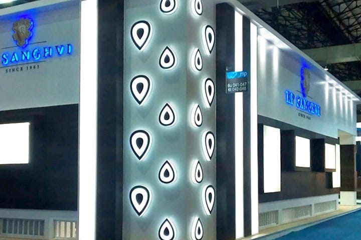 The intricate detailing of jali work, backlit evil eye, an extensive use of rich materials gave the stand a pristine look. Product displays and branding were designed in a way to maximize attention and visibility. The graphics added visual impact to this exhibition stall.