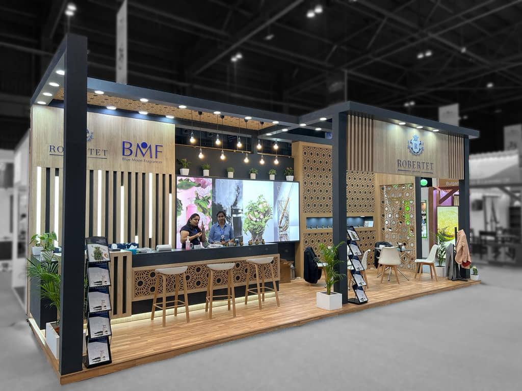 At FAFAI 2022, Robertet made a subtle, elegant debut. The booth featured a minimal, clean layout that allowed their fragrances to take center stage. Natural textures, soft lighting, and restrained branding created an inviting and refined atmosphere.