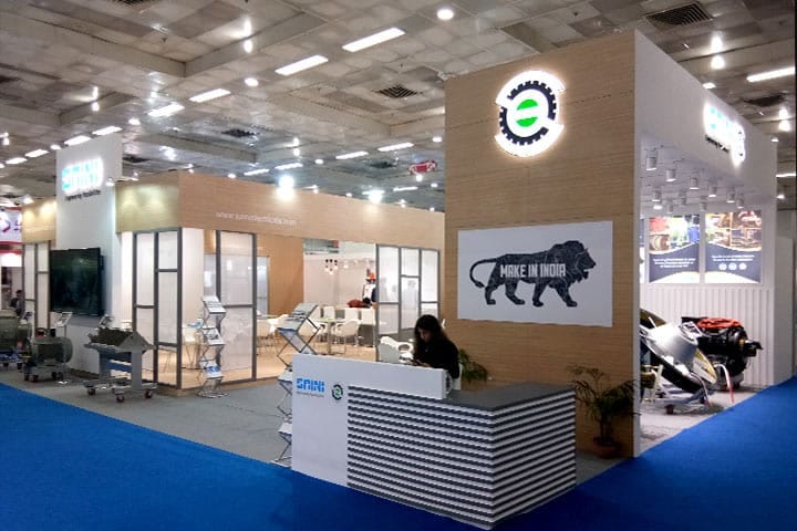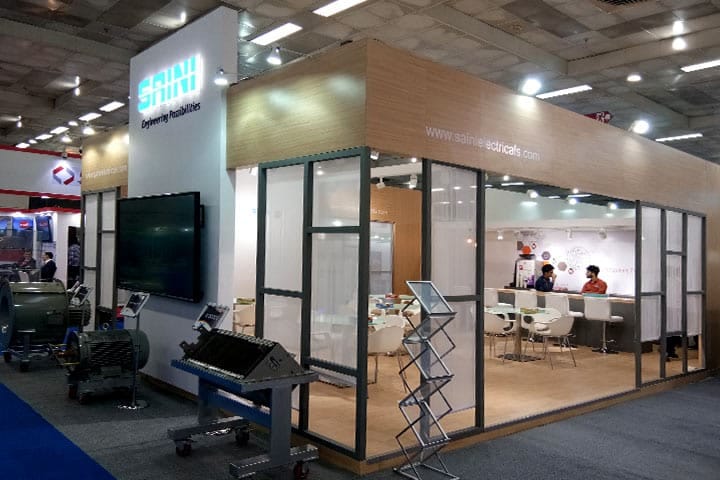 When Saini Engineering associated with First Rain, they came up with a unique demand for a closed exhibition stand with an open environment. An open and inviting exhibition stall was designed with enough breakout spaces which ensured that they grab attention and leave a lasting impression on the visitors. First Rain took up the challenge and engineered the exhibition booth accordingly.