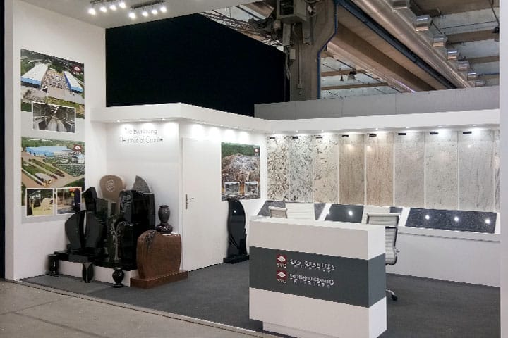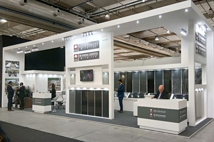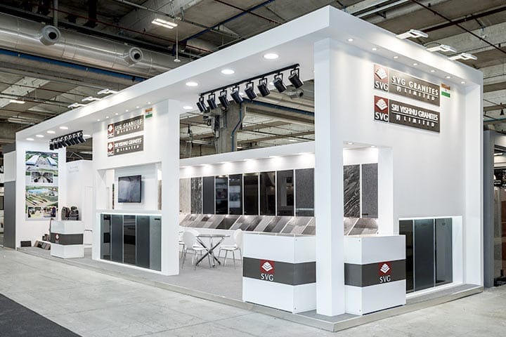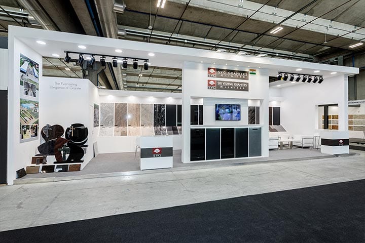 SVG’s uncompromising adherence to the highest standards of quality begins with achieving the finest finished product through a rigid and uncompromising Quality Control regimen that is implemented from start to finish. First Rain partnered up with Sri Vishnu Granites, designed and fabricated their exhibition stand at Marmomacc and Stone.